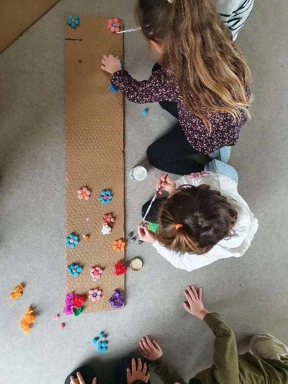 Chaque classe a confectionné une étoile qu’elle a suivi comme les mages pour venir apporter à la crèche des présents pour l’enfant Jésus : une boîte avec des paillettes d’or, une autre avec des bâtonnets d’encens et une troisième avec une crème symbolisant la myrrhe.