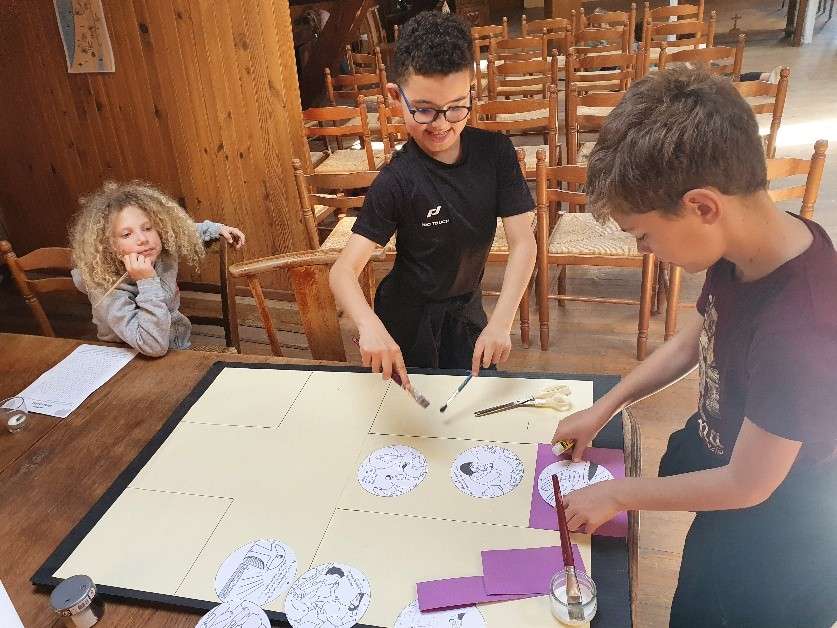 Enfin, les élèves de Notre-Dame ont réalisé un patchwork artistique autour des symboles du soleil et du cœur, exprimant ce qui les touche, les émeut et « réchauffe leur cœur ».