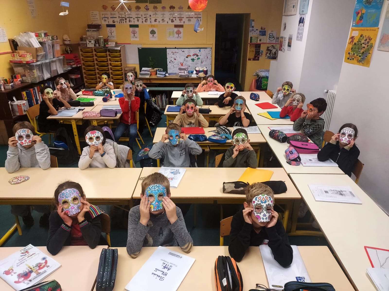 Au cycle 2, les élèves ont participé à des ateliers en fin de période : cuisine avec la confection de cookies, fabrication de masques pour el dia de los muertos, musique, informatique et réalisation d’un carnet de voyage.