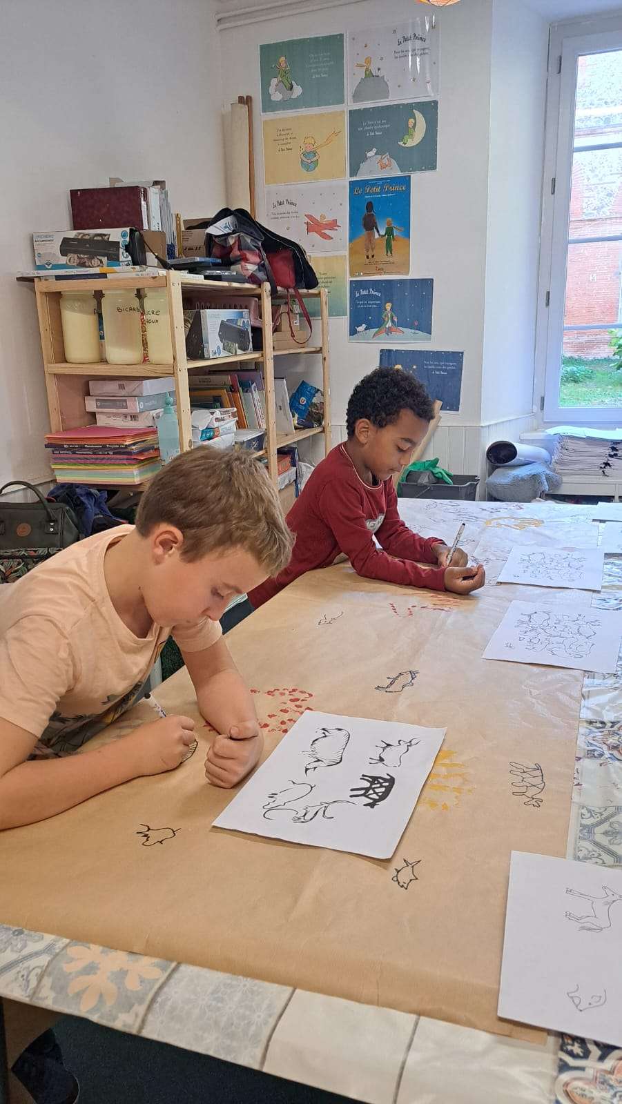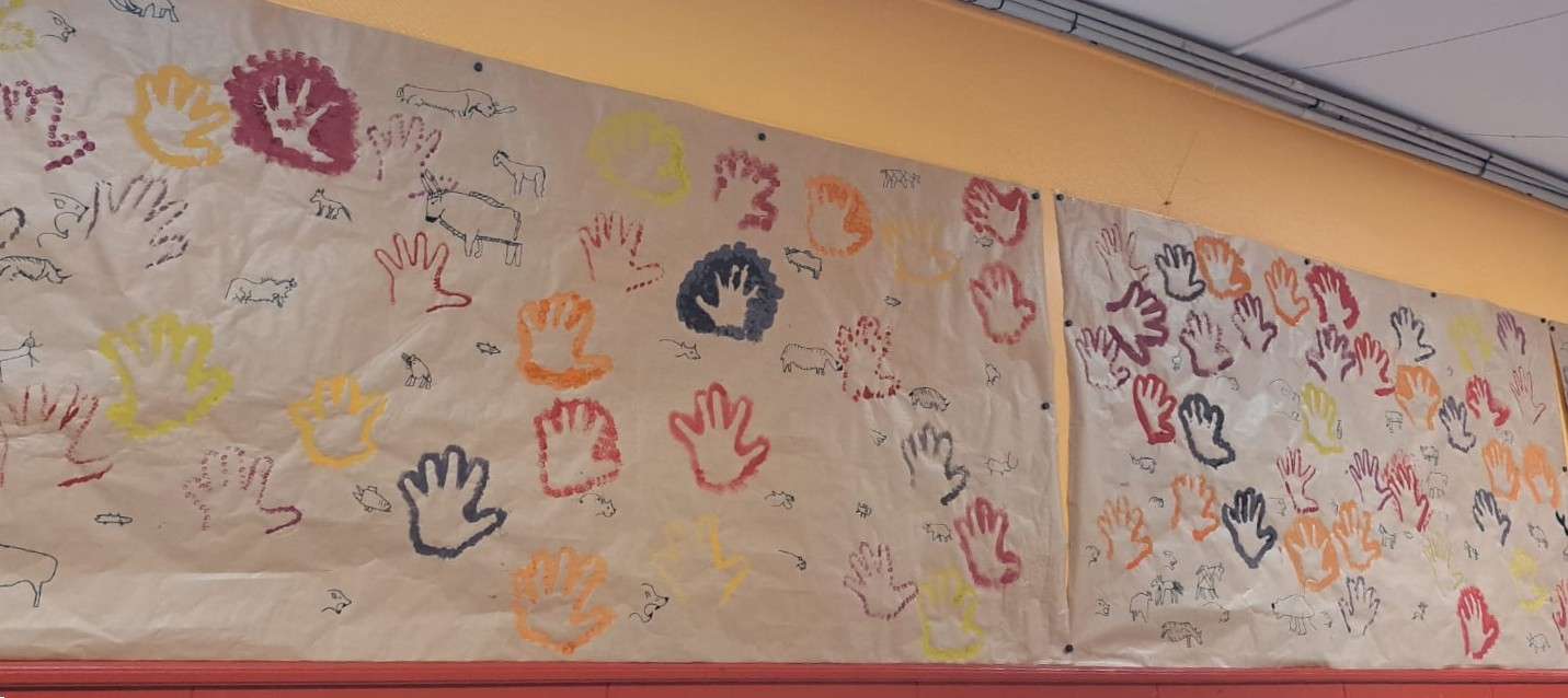 Cette première période, consacrée à la Préhistoire et à l’Antiquité, a permis aux enfants de remonter le temps tout en expérimentant différentes formes d’expression artistique. Ils ont ainsi peint comme les hommes préhistoriques, avec du charbon et des empreintes de mains, découvert le chant et les percussions corporelles, écrit leur prénom en hiéroglyphes, fabriqué des pendentifs en pâte autodurcissante à la manière des Grecs, et même pratiqué une initiation à la lutte gréco-romaine !