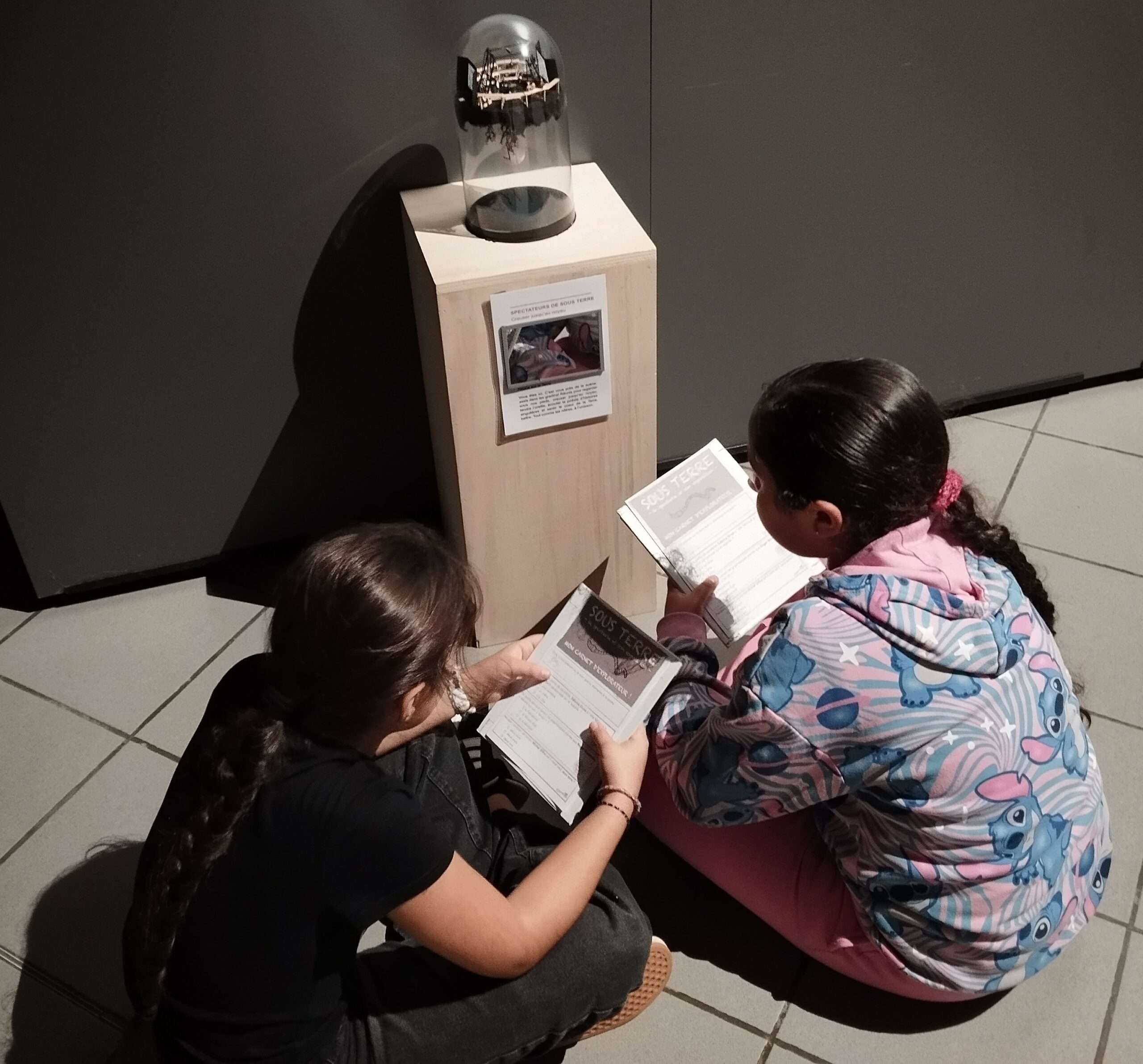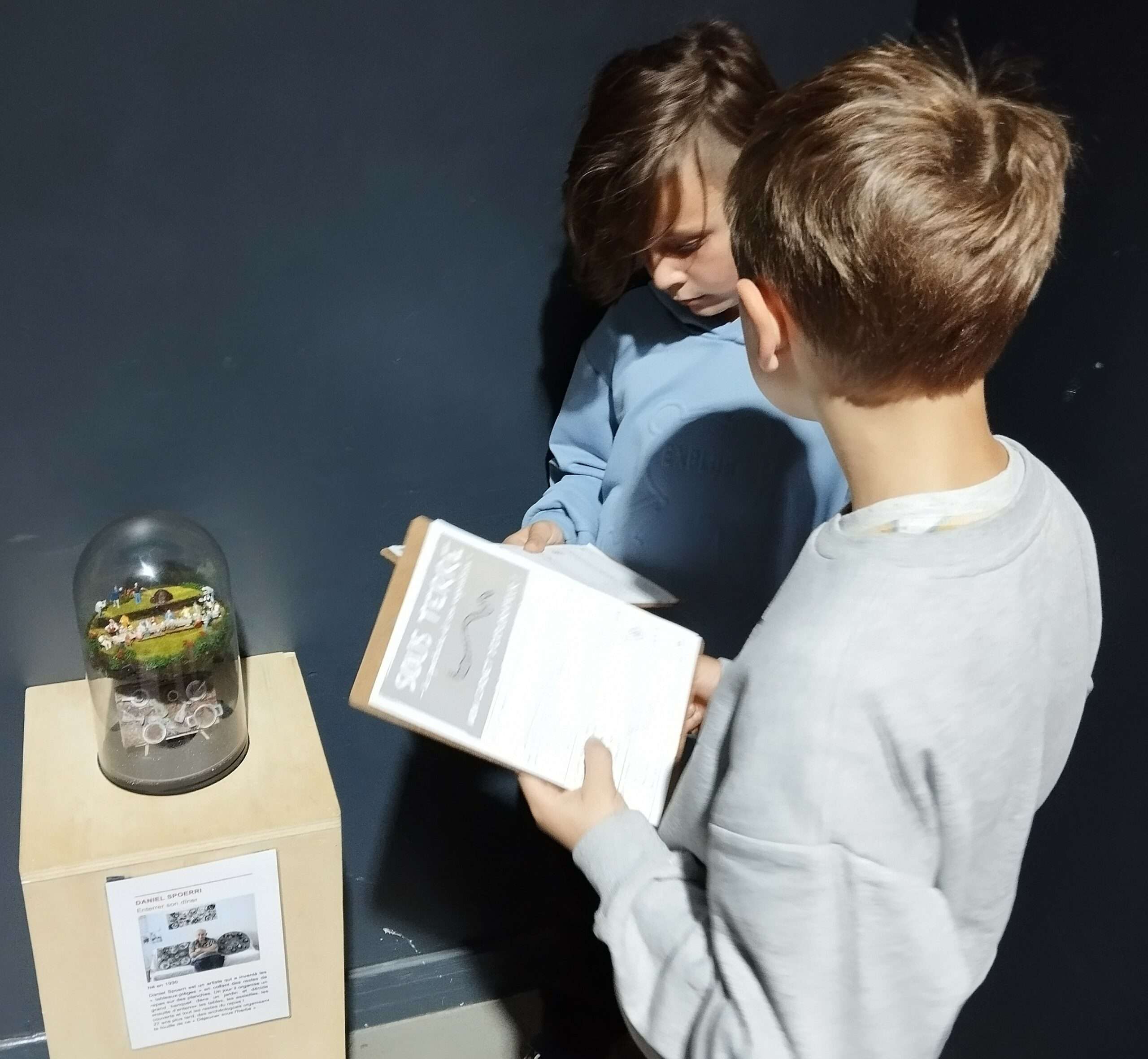 Avant la représentation, les enfants ont également eu la chance de découvrir l’exposition « Chroniques souterraines », une collection fascinante de mondes miniatures installés sous cloche. Chaque scène, délicatement construite, invitait à l’imagination et à l’observation attentive.