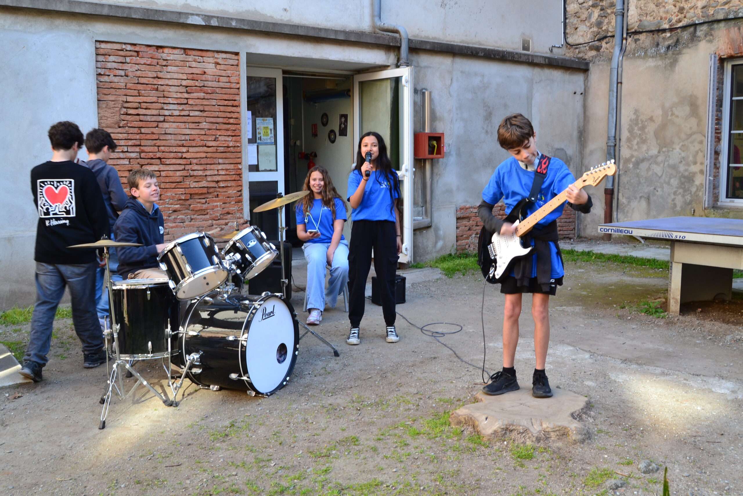 Les élèves du Primaire se sont mis en scène sur la thématique des Mondes Imaginaires. Tous les tableaux proposés ont été copieusement applaudis par les familles et amis venus en nombre pour l’occasion. Petit entracte durant lequel jeunes et moins jeunes ont pu passer des jeux en bois aux jeux gonflables en passant par l’atelier maquillage. Ensuite, retour sur scène, cette fois-ci avec les jeunes pépites talentueuses du collège. Enfin, les festivités se sont poursuivie jusqu’au bout de la nuit avec le repas Paëlla et Dj Jean-Luc !