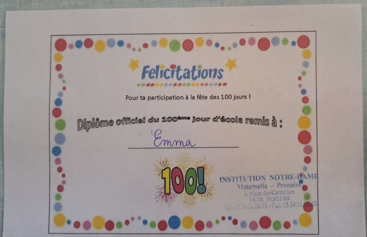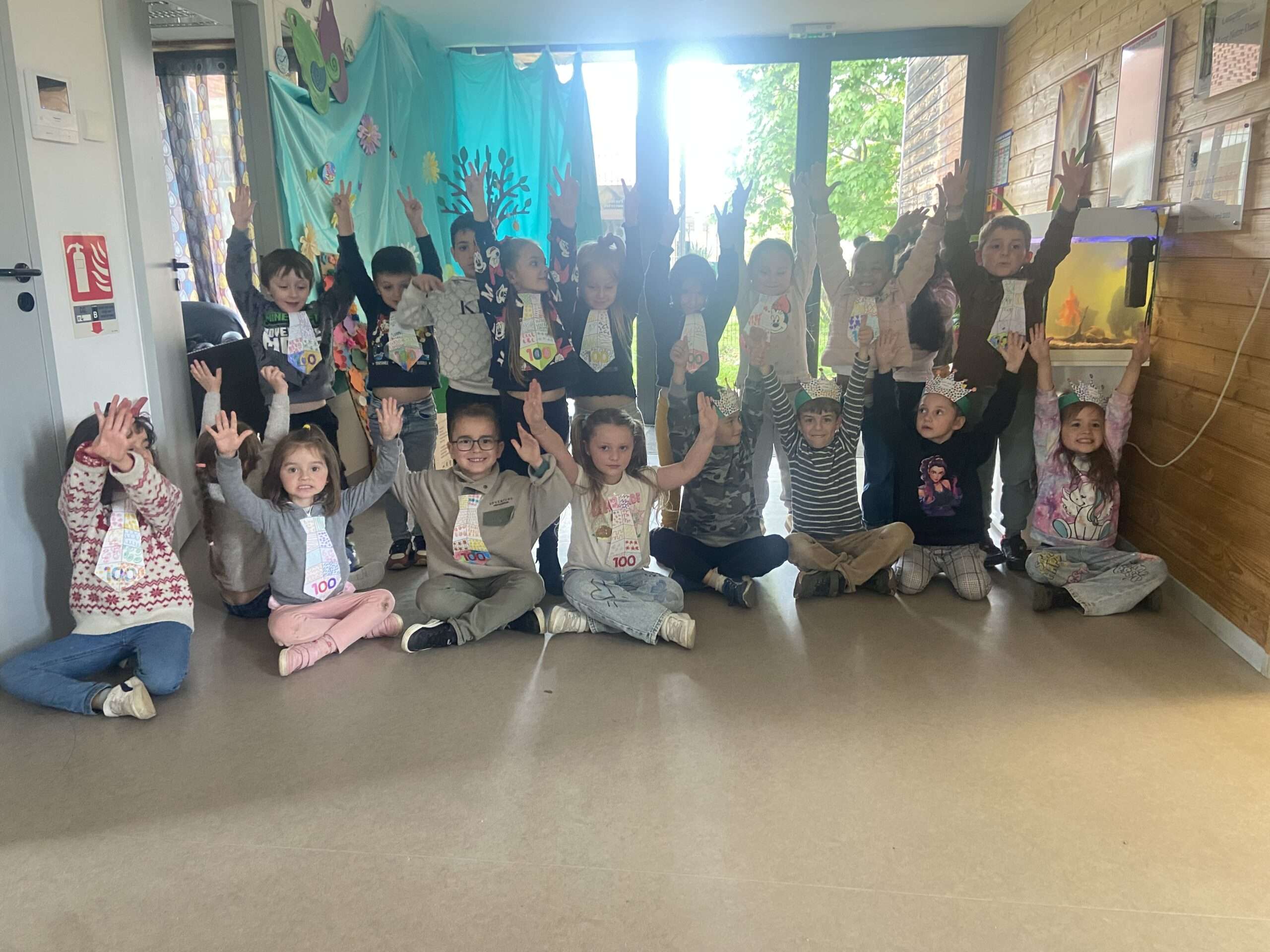 Les maitresses et les enfants ont lu 100 mots, découvert une comptine, écrit collectivement 100 mots, réalisé une cravate des 100 jours, executé 100 exercices physiques…