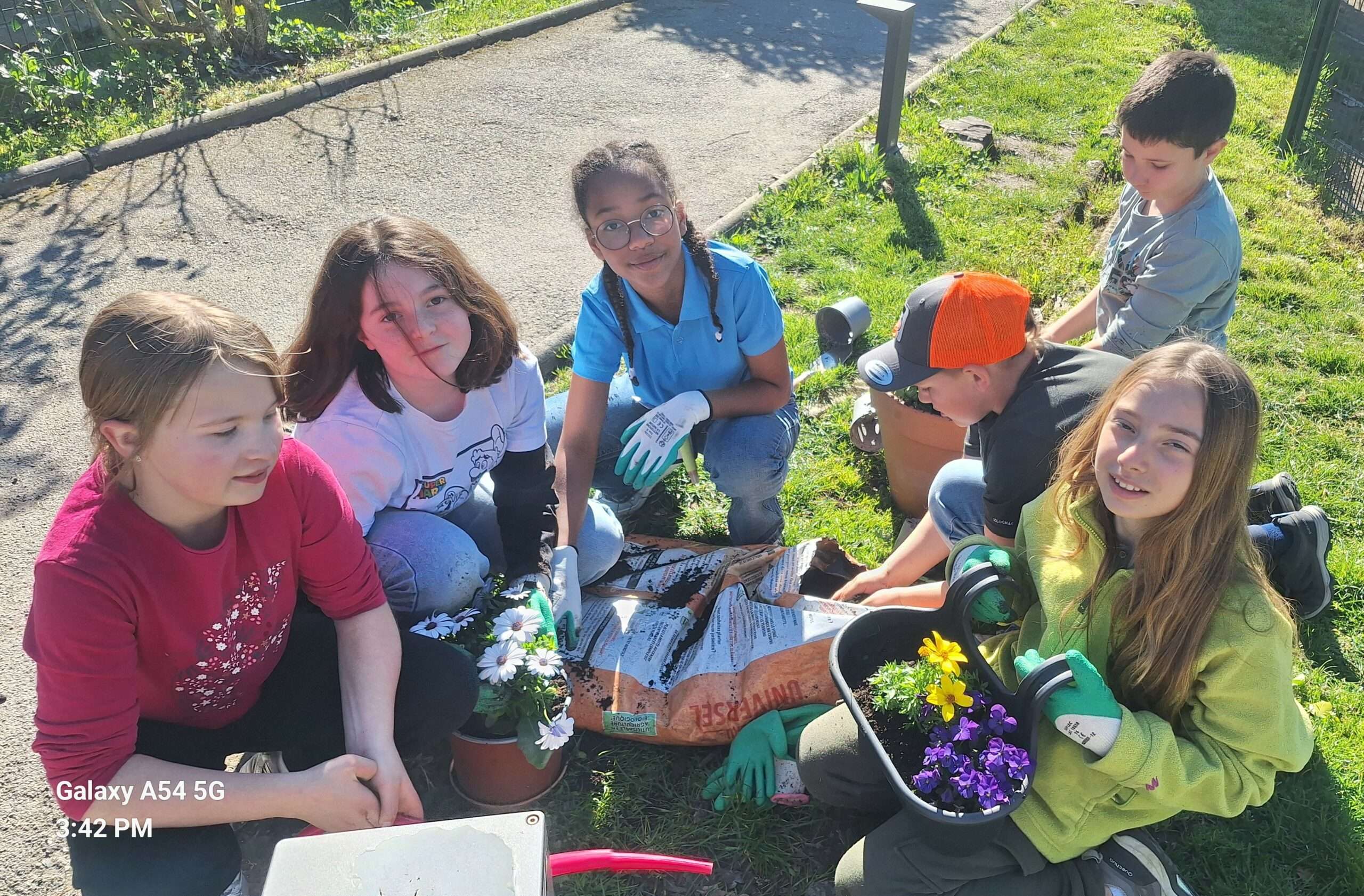 Dans cette belle dynamique, les élèves de CM1 de la classe de Mme Dubousquet ont également participé à l’embellissement de l’école en plantant des fleurs dans la cour, à l’occasion des Portes Ouvertes du samedi 21 mars.